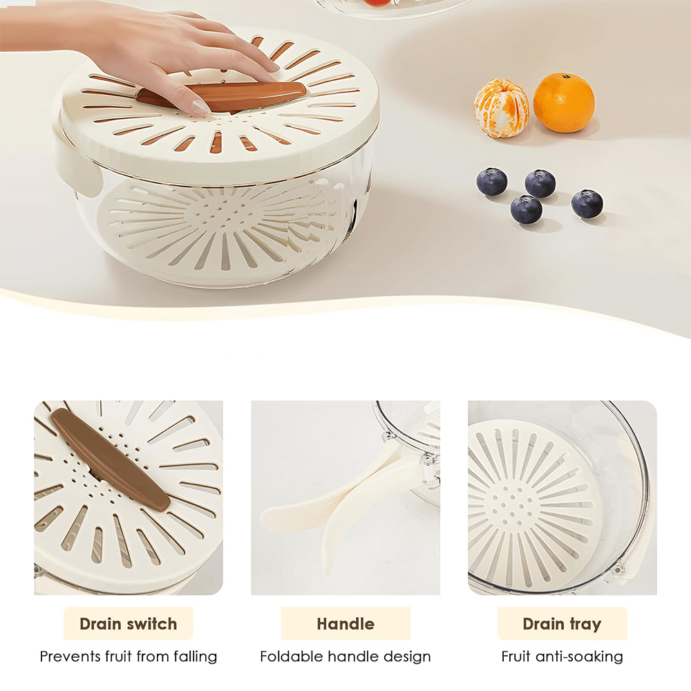 KEEP YOUR PRODUCE FRESH: The hollow mesh lid makes washing and draining your produce effortless. Once cleaned, it doubles as a refrigerator storage box with a breathable design that promotes optimal airflow and humidity control, ensuring fruits and vegetables stay fresher longer while reducing spoilage.