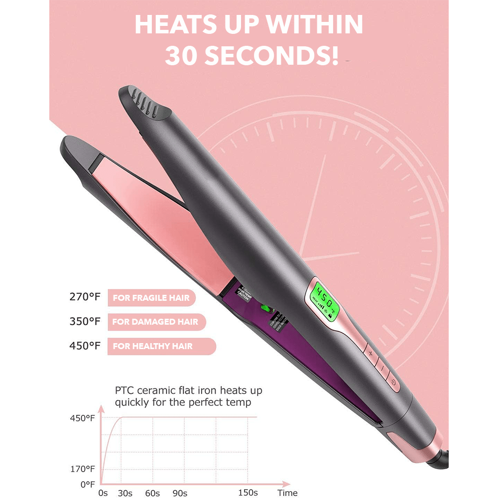 WORKS FOR ALL HAIR TYPES - Perfect for all hair types, the flat curling iron offers 12 temperature settings adjustable from 250-450°F with an LCD digital display, ensuring precise styling for long, short, thick, natural, and fine/thin hair.