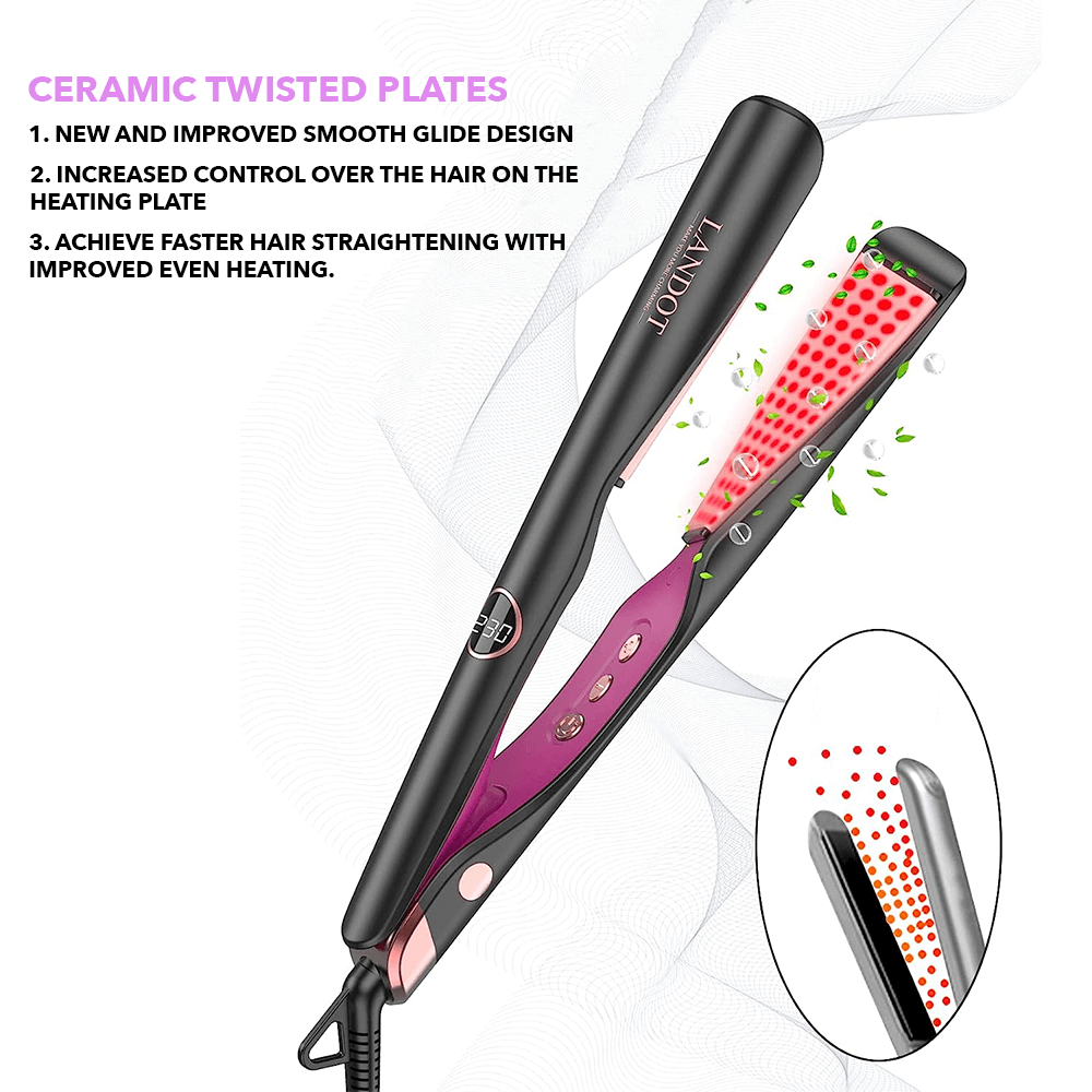UPGRADED 2-IN-1 DESIGN - The upgraded Twist & Curl Technology boasts innovative twisted, curved, and round plates designed to shape hair into bouncy curls, beachy waves, or sleek straight styles