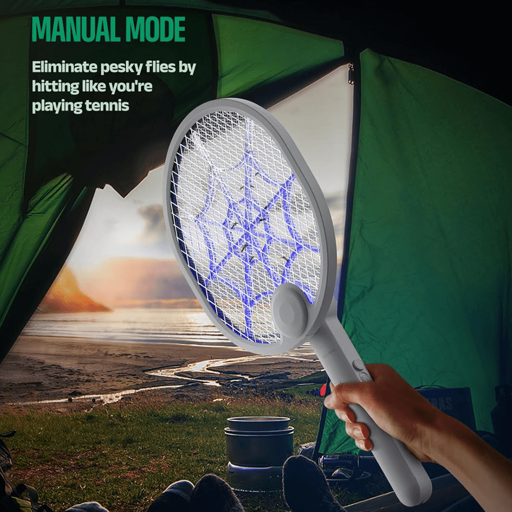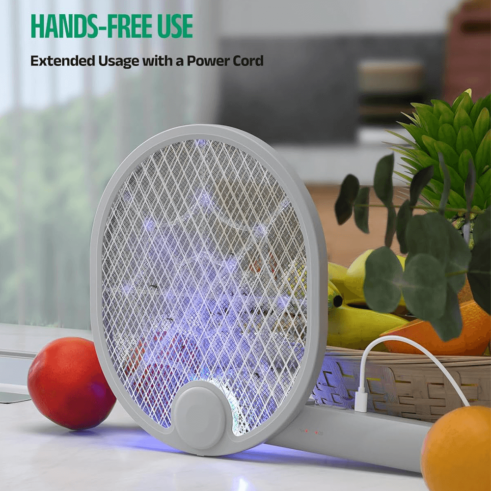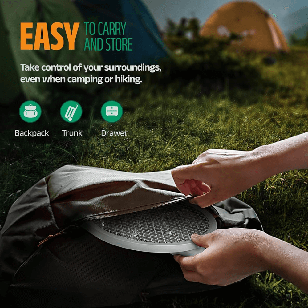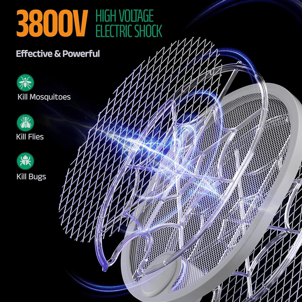 WORKS ON ALL TYPES OF INSECTS! - Featuring a high-voltage grid which instantly eradicates mosquitoes, bugs, bees, flies, gnats, and fruit flies. Its lightweight and portable design makes it the ultimate tool for protecting your family from the dangers of flying insects.