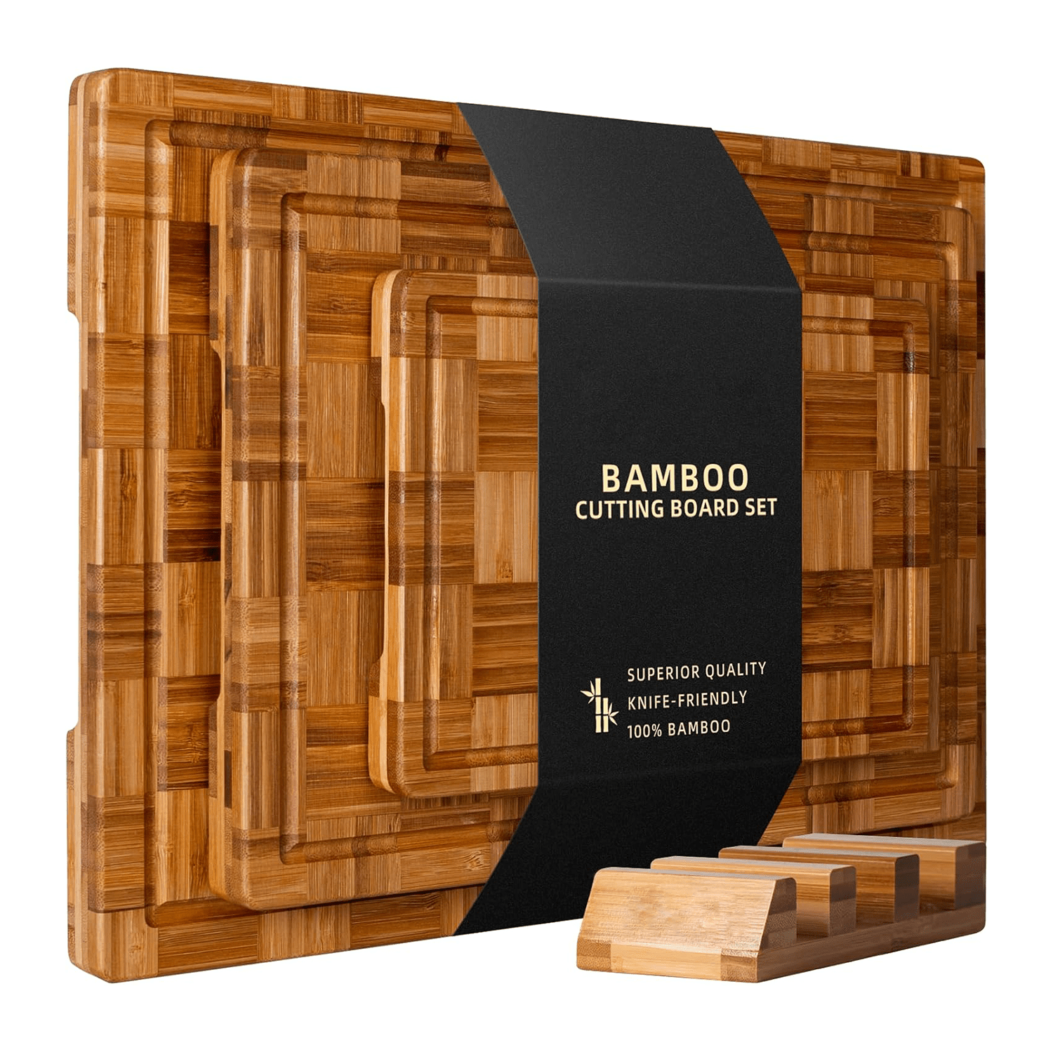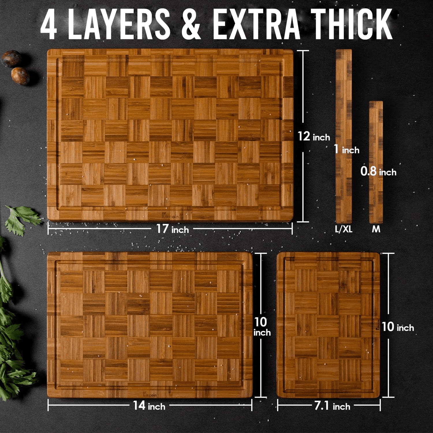 BUILT TO LAST: Unlike standard single-layer boards, each board in this set is crafted with a four-layer thickened bamboo construction using a precision splicing technique and sealed with food-safe mineral oil for long-term durability.