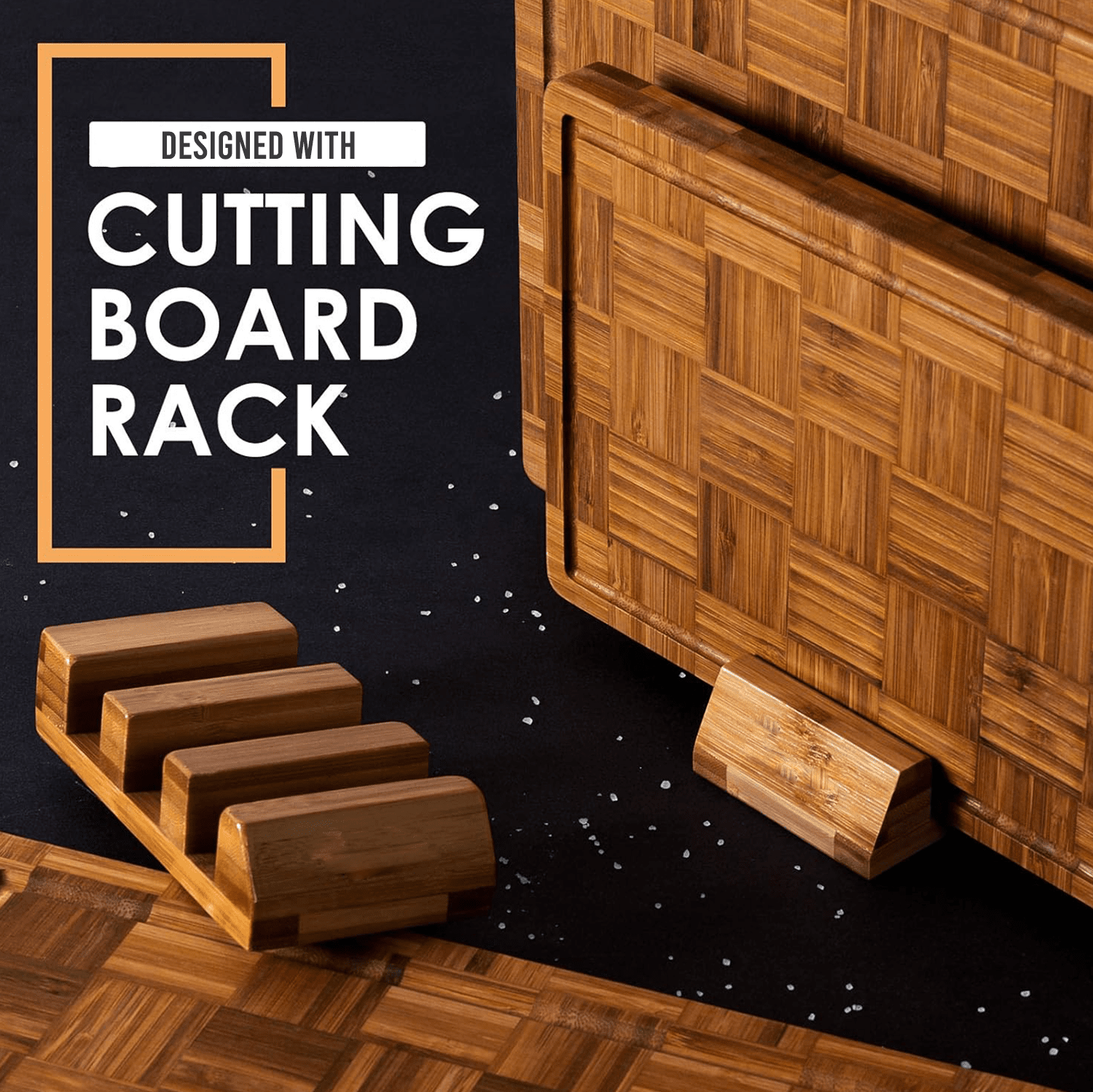 SMART STORAGE INCLUDED: The included cutting board rack keeps all three boards upright, dry, and organized, saving counter space and keeping your kitchen organized.